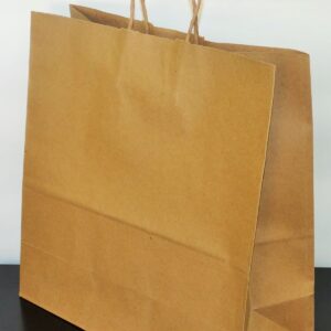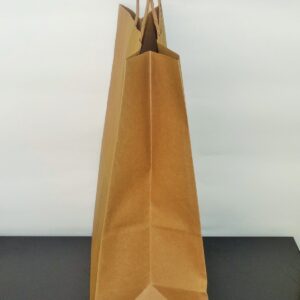 Bolsa de papel kraft de 30.5 cm de ancho x 43 cm de alto y 18 cm de ancho de fuelle. CON ASA TRENZADA