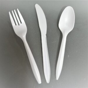 Complementa tu juego de cubiertos con tenedor y cuchillo también de fécula de maíz.