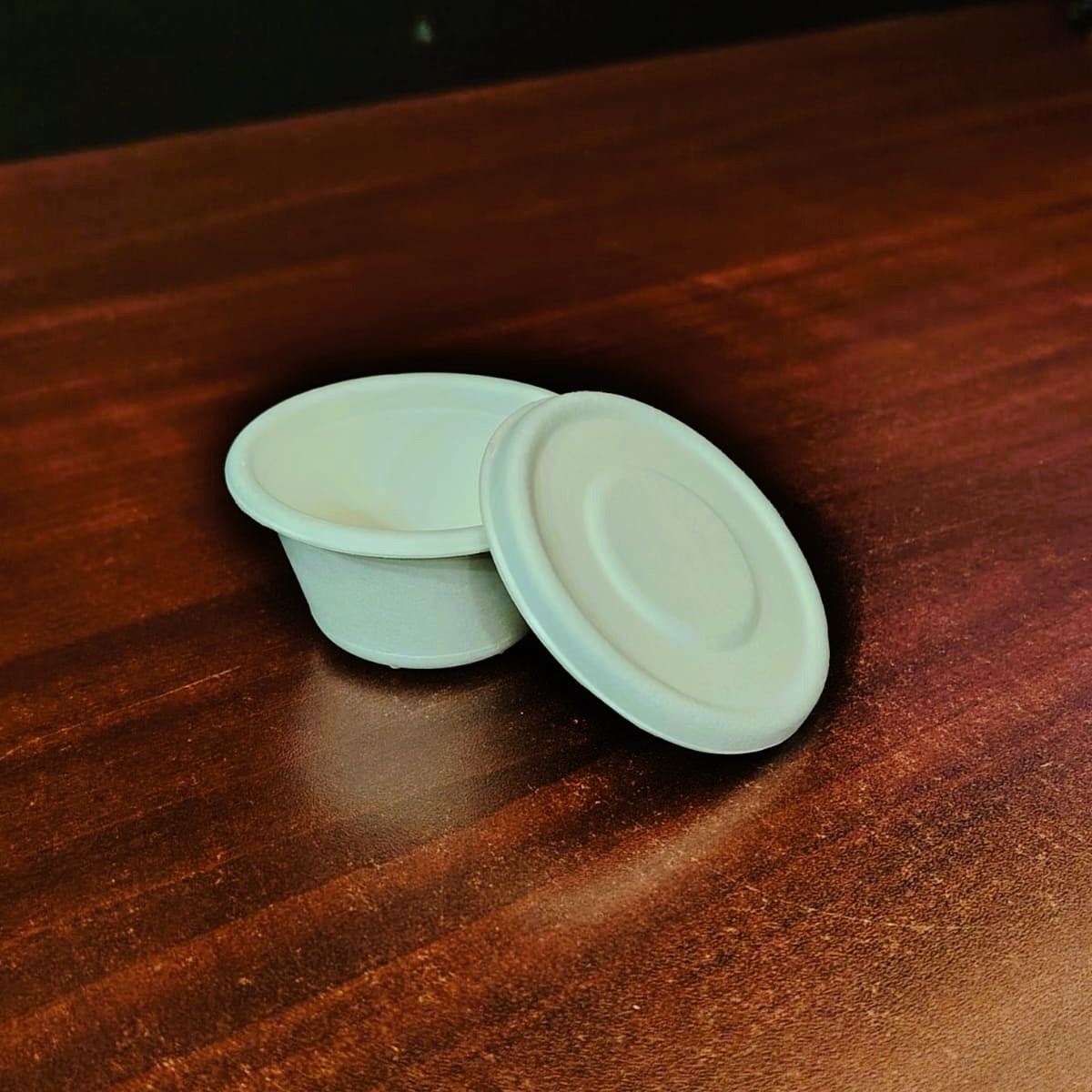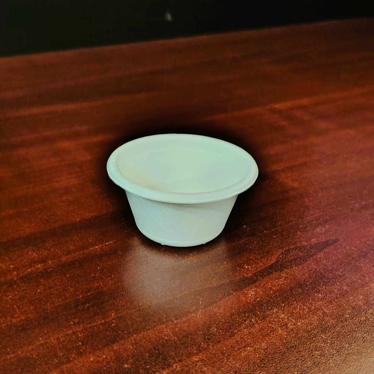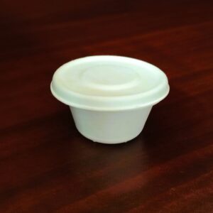 Vasito soufflé de fibra de caña de azúcar de 2 oz de capacidad (59.14 ml) para salsas o aderezos.